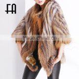Factory Direct Wholesale Fashion Knit Fox Fur Shawl With Pocket
