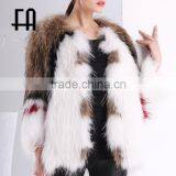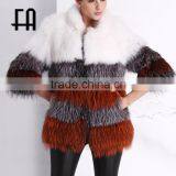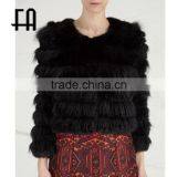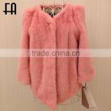 Factory Wholesale Price Tiered Concealed Hook Fastening Rabbit Fox Fur Knit Jacket