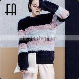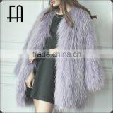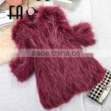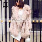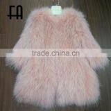 Factory Wholesale Price Round Neck Pink Raccoon Fur Knitted Overcoat