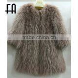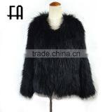 Factory Price Wholesale Fashion Lady's Knitted Mongolian Lamb Fur Jacket /knitted Mongolian Lamb Fur Coat