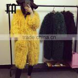 Factory Price Wholesale Curly Knit Mongolian Lambskin Fur Coat