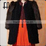 Factory Price Wholesale Fashion Lady's Lamb Knitted Fur Coat With Fox Fur Sleeve