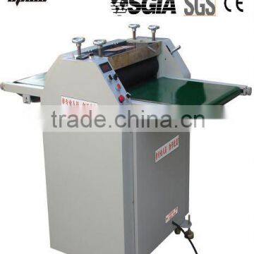 (3)It is simple-type laminating machine with its speed being regulated by variable frequency, being drived by motor with deceleration device, being transmitted by chains and gears, feeding and out-feeding at the same time.