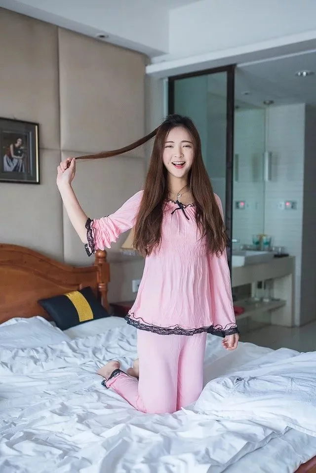 Noya Customized ZM 0370 Women U-neck Line Pajamas Set With Laciness