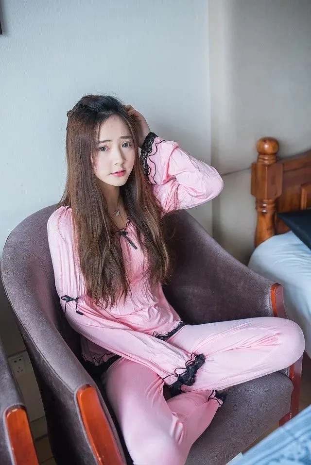 Noya Customized ZM 0370 Women U-neck Line Pajamas Set with Laciness