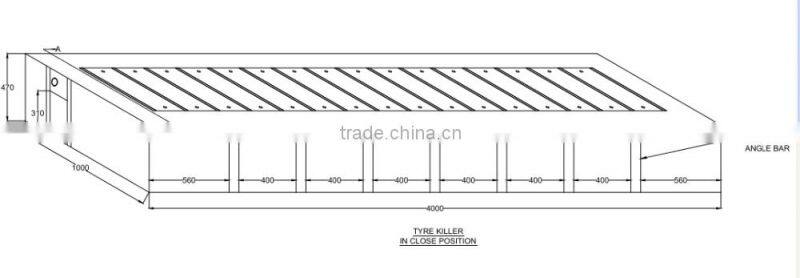 The length of this buried spike tyre killer is 6000mm .It is the rotary hydraulic electronic spike tyre killer which used to 4000mm~6000mm road vehicle access port. It can be linked with gate control system or used separately .
