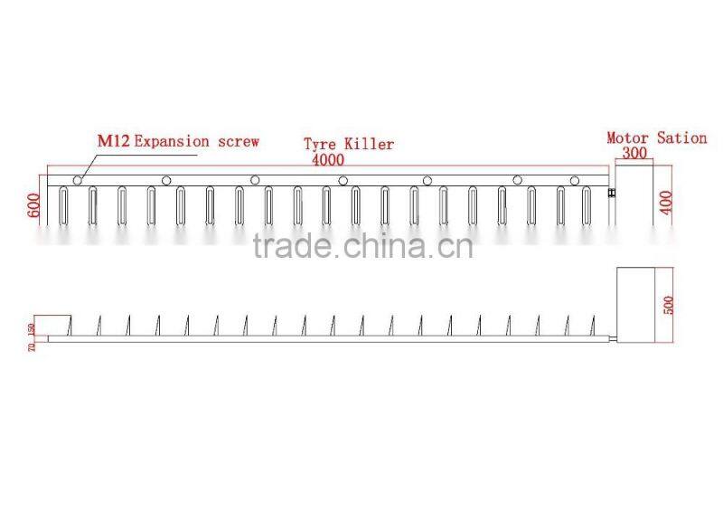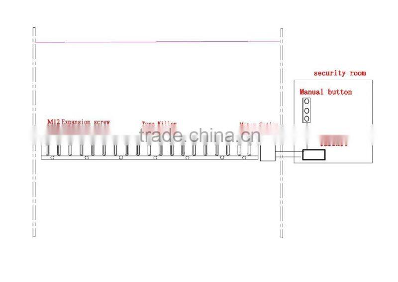 The tyre-killer is made of A3 steel and steel blade(Shape looks like speed bump). It adopts the mechanical and electrical integration remote control device,easily operated,safe and reliable.It is advanced equipment to intercept forbidden vehicles and terrorist vehicles.