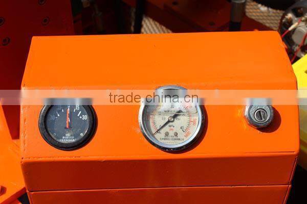 By hydraulic pressure.the two oil cylinder will give a powerful pressing for the block.after material feeding,the two oil cylinder will press the middle block,final up mold rise, the block will come out