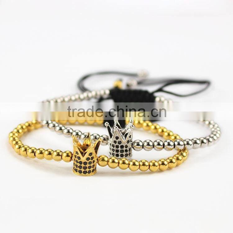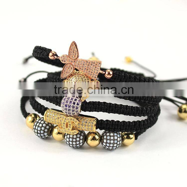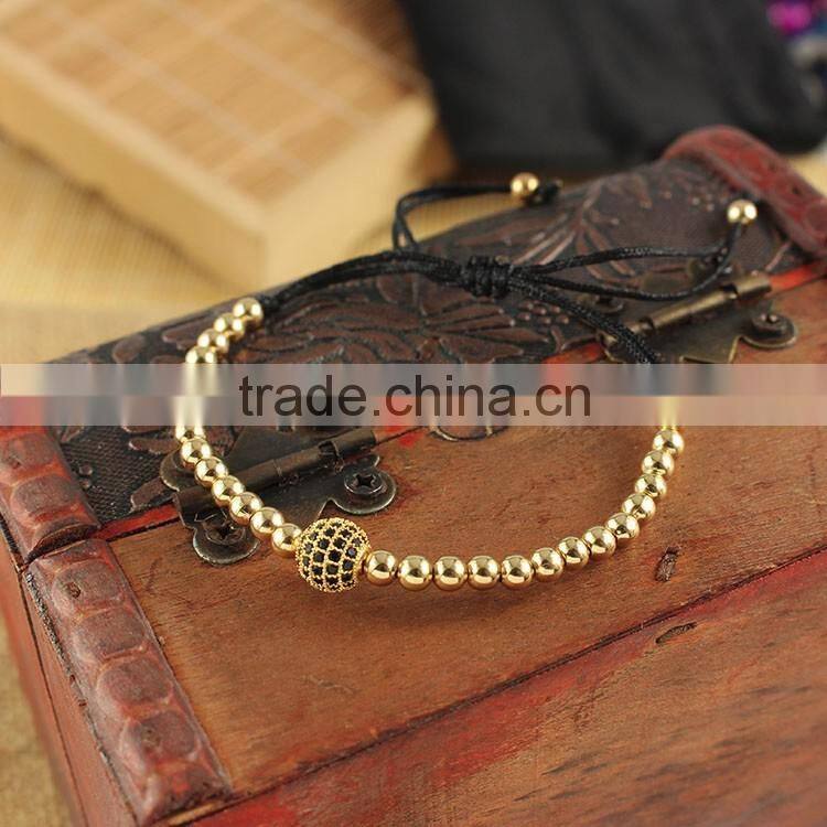 Hot sale gold cz micro ball beads macrame men hand bracelets
