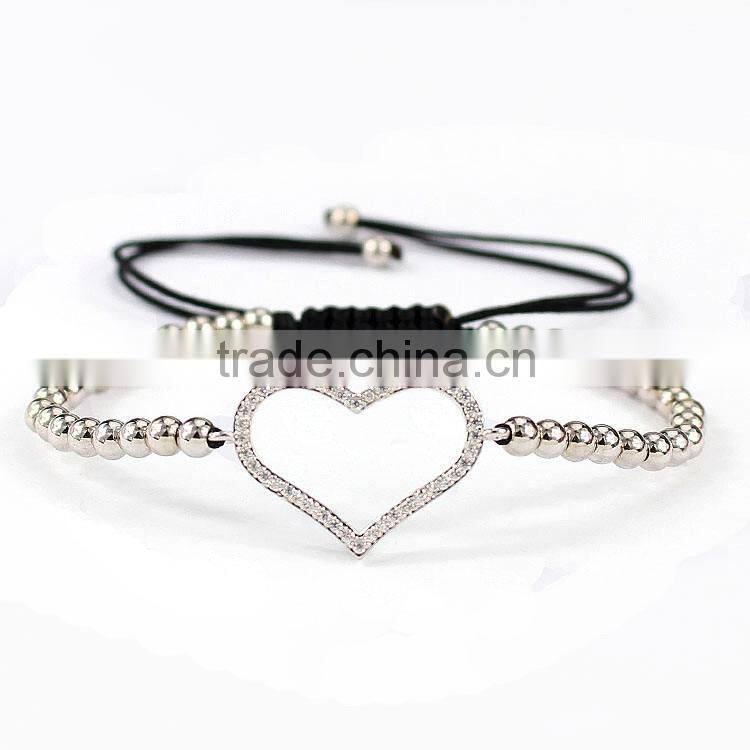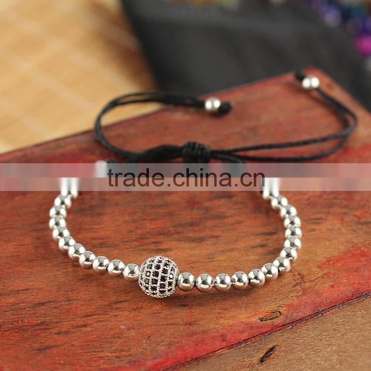 fashion 4mm silve ball & crystal bead black string macrame bracelet