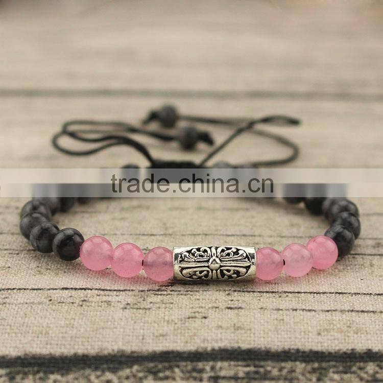 Home > Products > Bracelet & Bangles > BRB1378 Wholesale Rose Quartz Onyx Beaded Carved Bar Macrame Women Bracelet