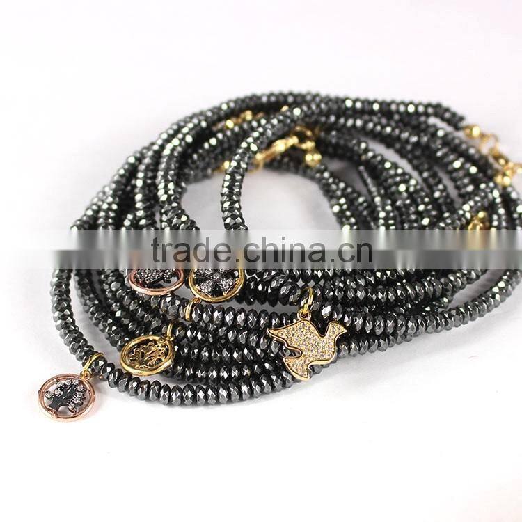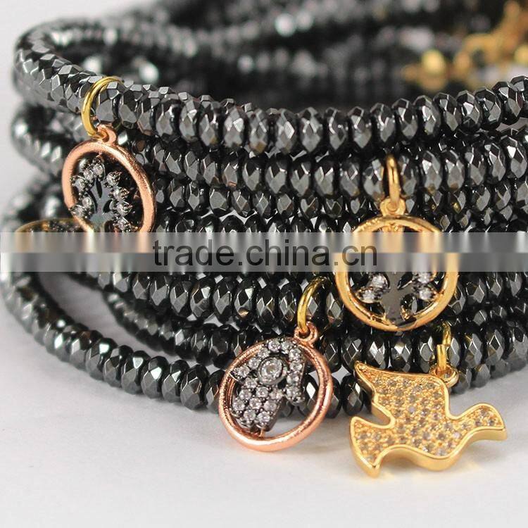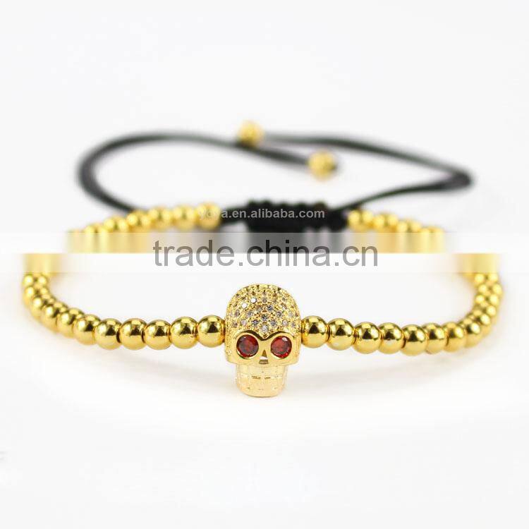 Wholesale gold hematite beaded cubic zircon micro pave skull bracelet