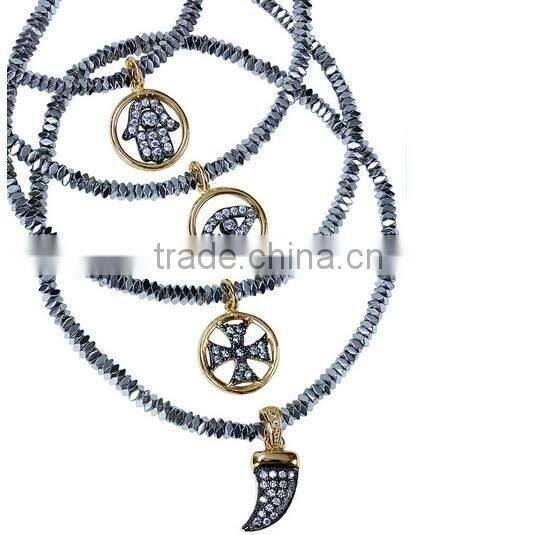 Hematite beade cross ,Evil Eye,hamsa hand charm bracelet