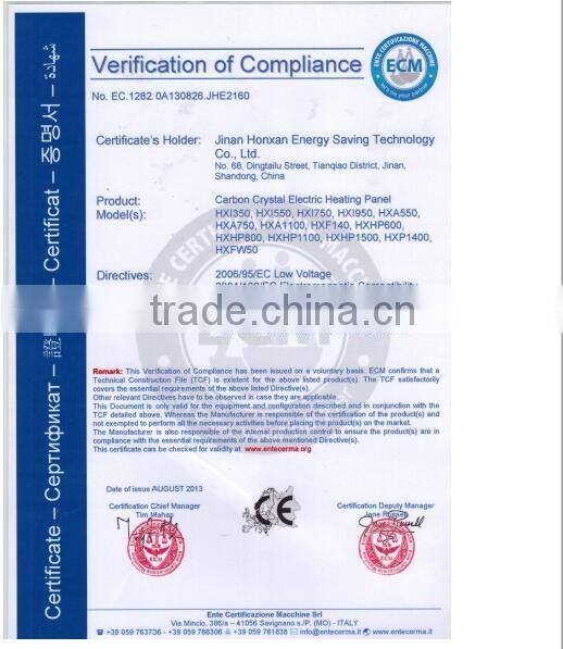 Service life of carbon crystal heating panels is more than 100,000 hours according to aging test.