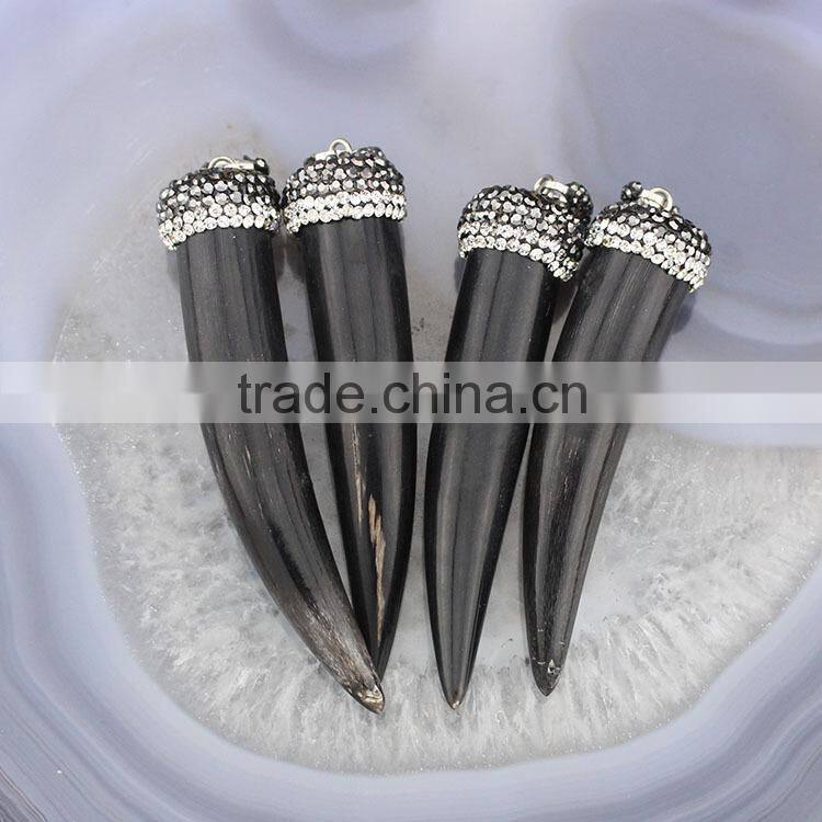 rhinestone crystal pave natural black horn pendants