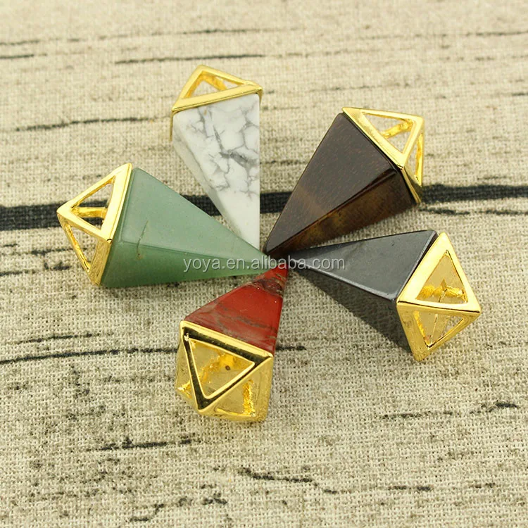 gold cap gemstone hexagonal crystal pendant