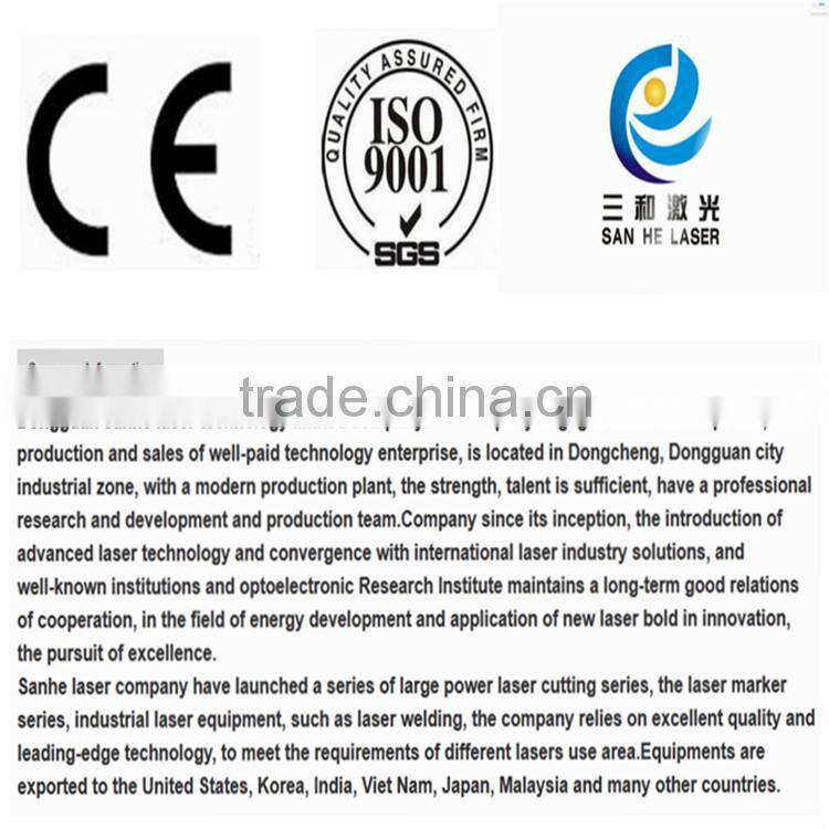 Dongguan Sanhe Laser Technology Limited Company is a professional manufacture of laser equipment and the modernization of production and application of high-tech enterprises, In this eight years ,Outstanding sanhe teanm has been committed to the study and practice of light conversion , take lifting laser value as our buisiness goals ,take promoting Chinese national laser industry to the international for our glorious mission . we belive that if you want to succeed , you must professional , and professional derived from the practical , and pragmatic is responsible . We insist on professional skills and pragmatic approach to service each customer .