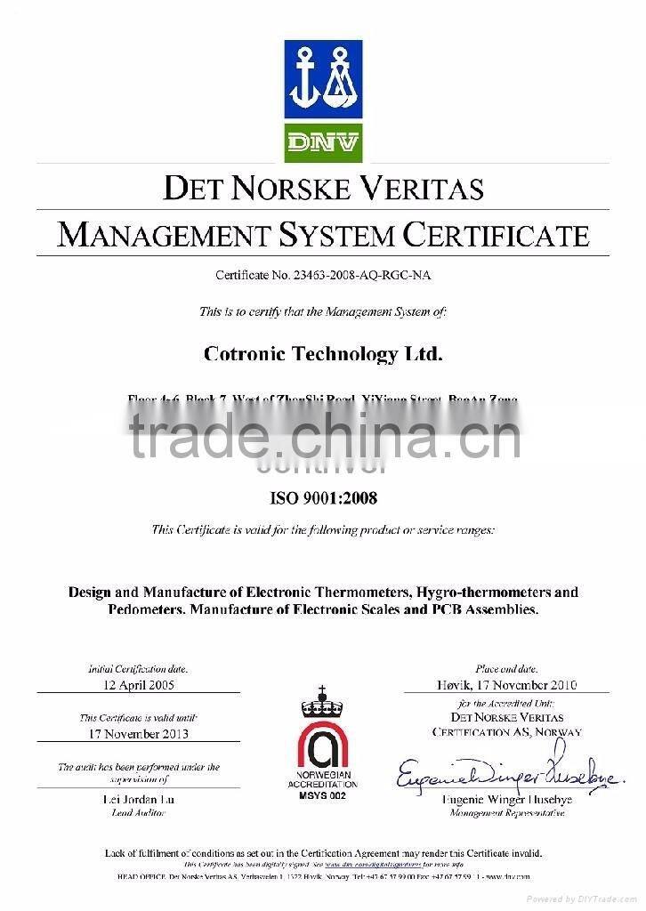 Founded in 1996,Contriver cotronic, an ISO9001+ISO14001+ISO13485+CE+FDA accredited Hong Kong company manufacturing digital thermometers, hygro-thermometers, pedometers, cyclocomputer, temperature modules. The factory located BaoAn ShenZhen China.