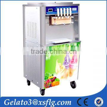 Self-service soft ice cream machine should be with three parts like bill acceptor.its material is stainless steel,R404A refrigerant,power our factor have 2800-4500W to work.and every hour capacity is around 40-80 Liters.mainly used to many supermarket shop.