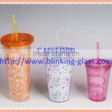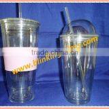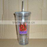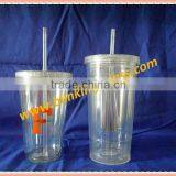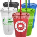 Plastic double wall cup with straw and lid- 16OZ/21OZ;