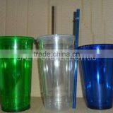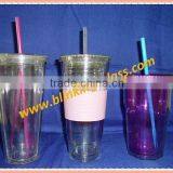 16oz Double Wall Plastic Cup With Straw- Acrylic Material .