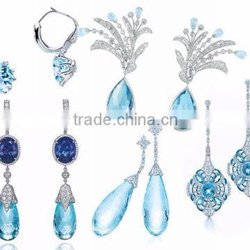 Silver Earring, CZ Crystal Diamond 925 Sterling Silver Earring, Silver Earring Settings Fashion Jewelry PT9009