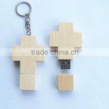 Promotional Fashion Cross Shape Customized Wooden Usb Flash Drive
