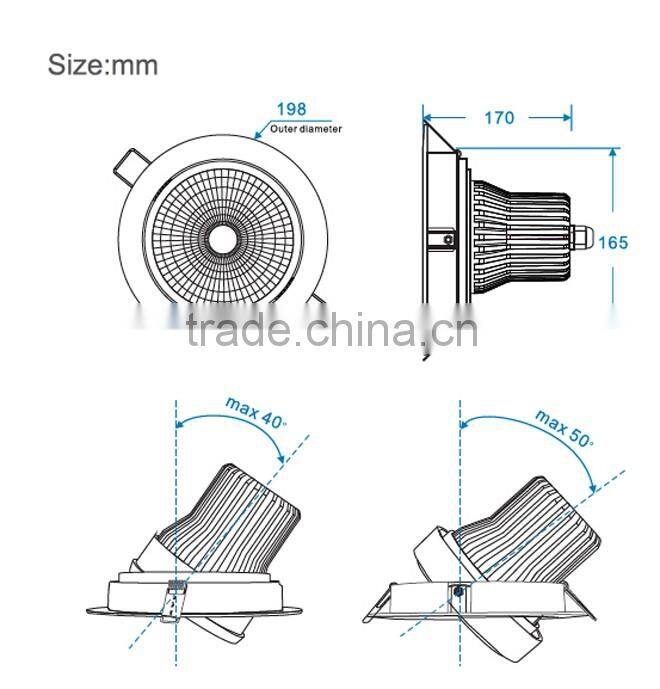 Popular High End CRI90 4-way Rotatable COB 30w LED Downlight