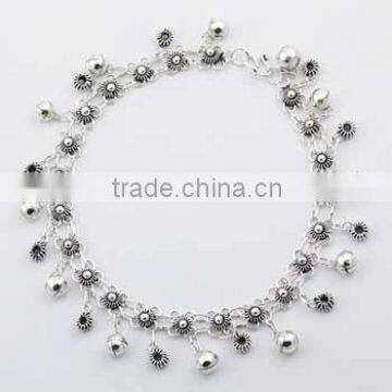 Adorable Flower Chain 925 Silver Anklet Flower Sphere Charms