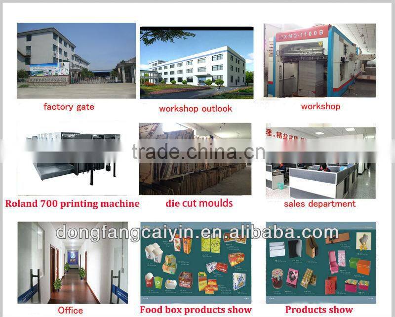 Our factory have full set equipment to produce paper package, sets of Roland 5 colors and 4 color printing machines, automatic die-cutting machines, automatic gluing machines,lamination machines,stamping machines,ect.We also have professional design team, powerful production lines and skillful sales department, which provide the qualified products and good service for every customer.