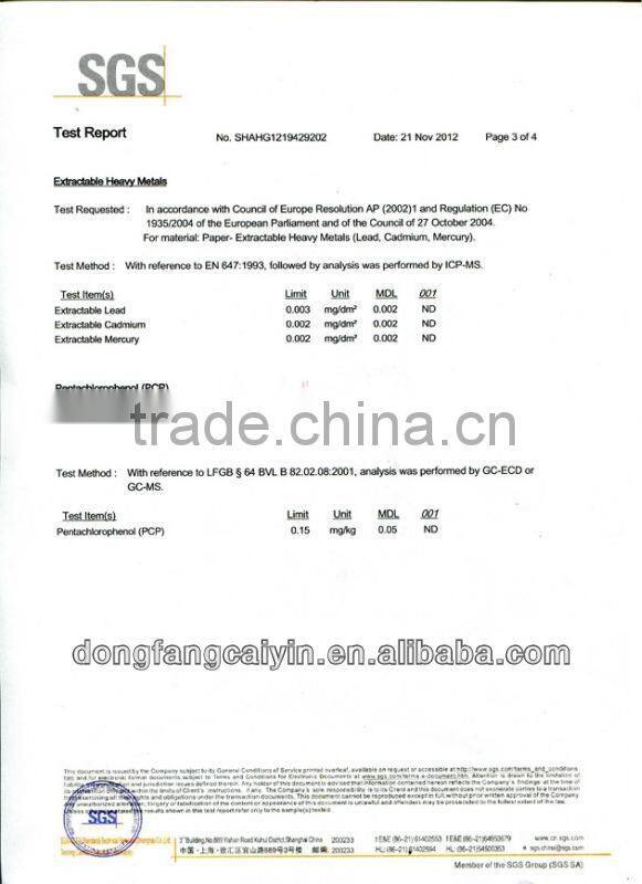 1,high quality food grade paper for food packaging, 2,environmental,biodegradable 3,different paper weight as your need 4, printing:customized printing (CMYK or pantone), flexo printing, offset printing |