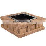 Antique Square Stacked Rock Stone Finish Outdoor Fiberglass Fire Pit