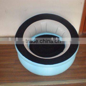1.Name:inflatable flocked barrel chair 2.Material:EN-71 standard and ASTM standard PVC.