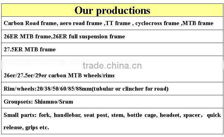 We are specializing carbon bike frames, carbon bicycle frames, hand built carbon wheels clincher, carbon wheels tubular, carbon wheelsset, road bike wheels, carbon racing bike,mtb ,track ,disc wheels,carbon rims, carbon bottle cages, carbon handle bars, carbon stems, carbon headset, carbon seat post,etc.