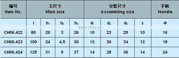 Item No. | Main size | Assembling size | Handle | ||||||
