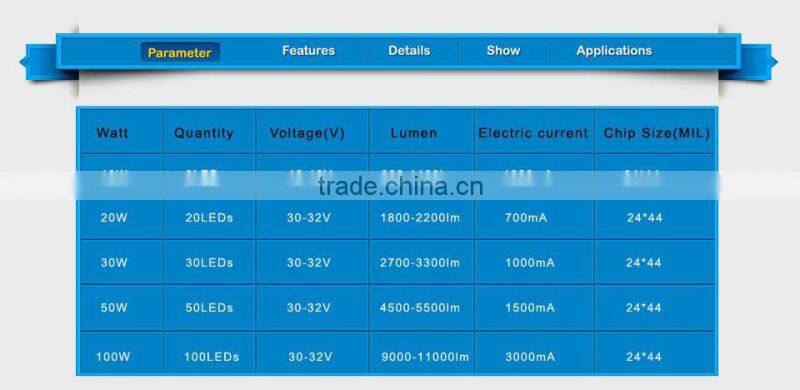 Forward current: 10w(1000mA) 20w(700mA) 30w(1000mA) 50w(1500mA) 100w(3000mA)