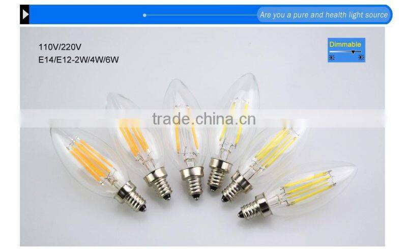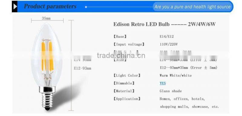 E14 E12 Led Light 110V / 220V 2W 4W 6W Led Filament Bulb Candle Light Lamp Lampada Led Retro Edison Glass Crystal Chandeliers
