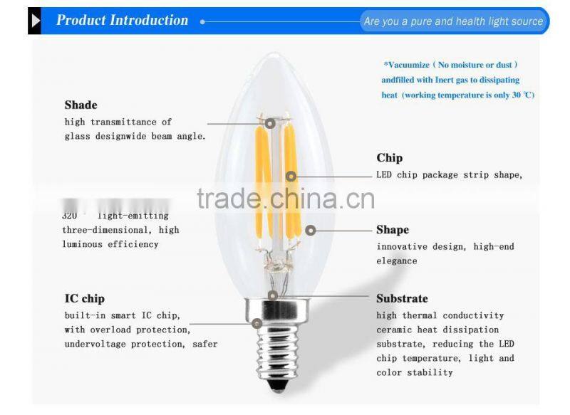 Adopting IC constant current driver, the filament bulb possesses stable performance and longer life