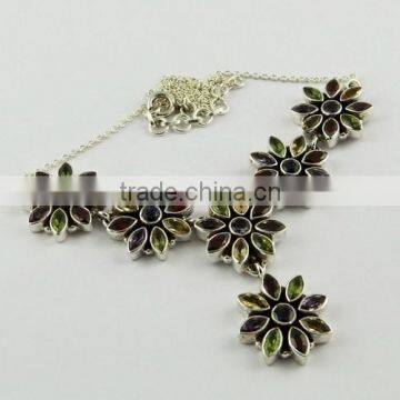 Lovely Kiss !! Multi Colour 925 Sterling Silver Necklace, Gemstone Silver Jewellery, Handmade Silver Jewellery