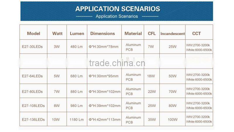 Newest Smart IC No Flicker Lampada Led Lamps E27 220v 110V 127V Led Light 24Led 36Led 48Led 56Led 72Leds Candle LightingUS$ 0.1 - 100MOQ: 1 Piece