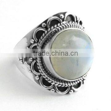 Stone Name -Rainbow Moonstone, Size - 4-10 US, Shape - Round, Setting - Bezel