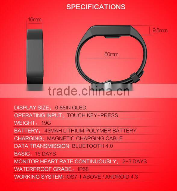 Sleep Monitoring Function of 2016 new adjustable surge similar real time heart rate monitoring fitness smart health band