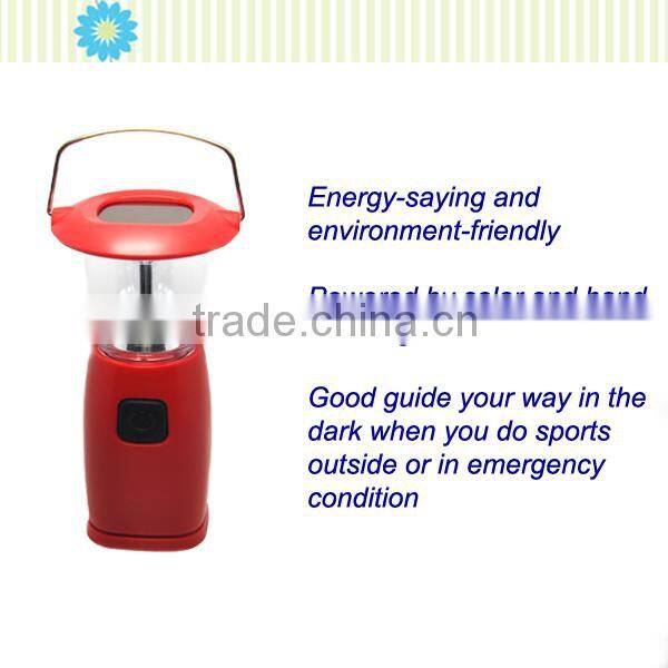 Powered by solar and cranking: Cranking the handle 1 minute to keep brightening about 10 minutes,