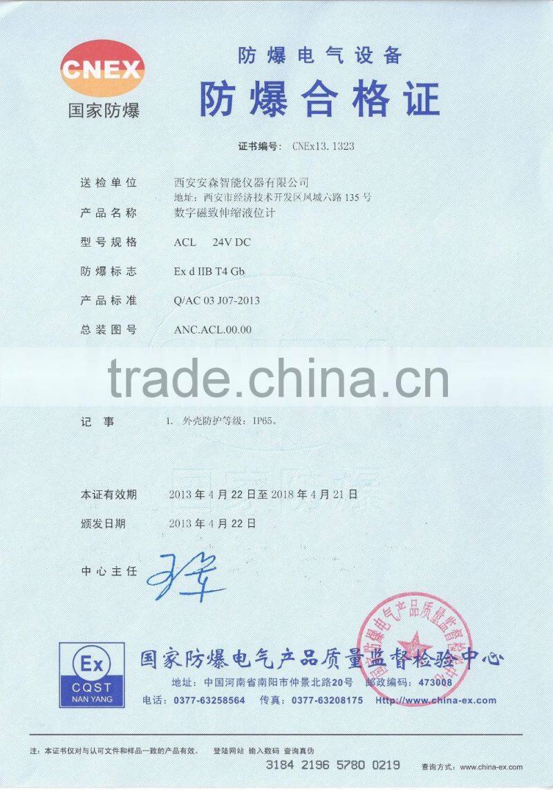 ACL-1 Series Industrial Level Meter is a product designed and produced by Xi’an ANCN Intelligent Instruments Co.,Ltd itself. It is a new generation product based on the magnetostrictive theory, modern digital circuit or analog circuit. By its outstanding features like high accuracy, high stability, simple structure, easy installation, anti power interference, anti environment interference, ACL has won a good reputation in the market.