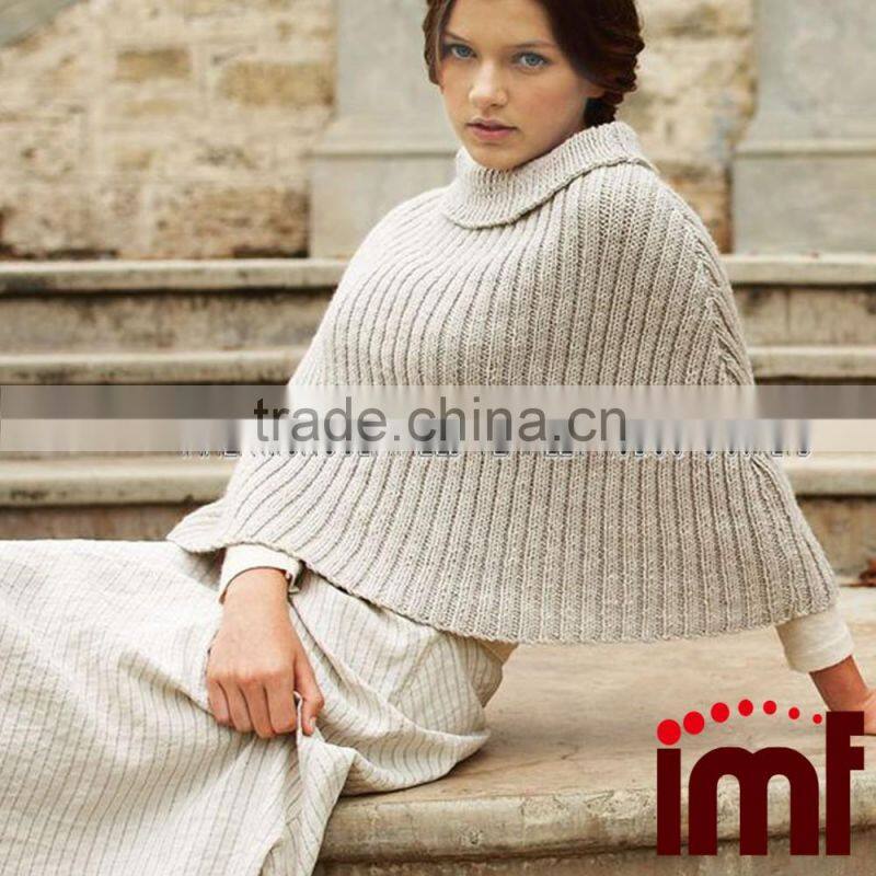 Cow Neck Crochet Poncho Top Cashmere Knitwear