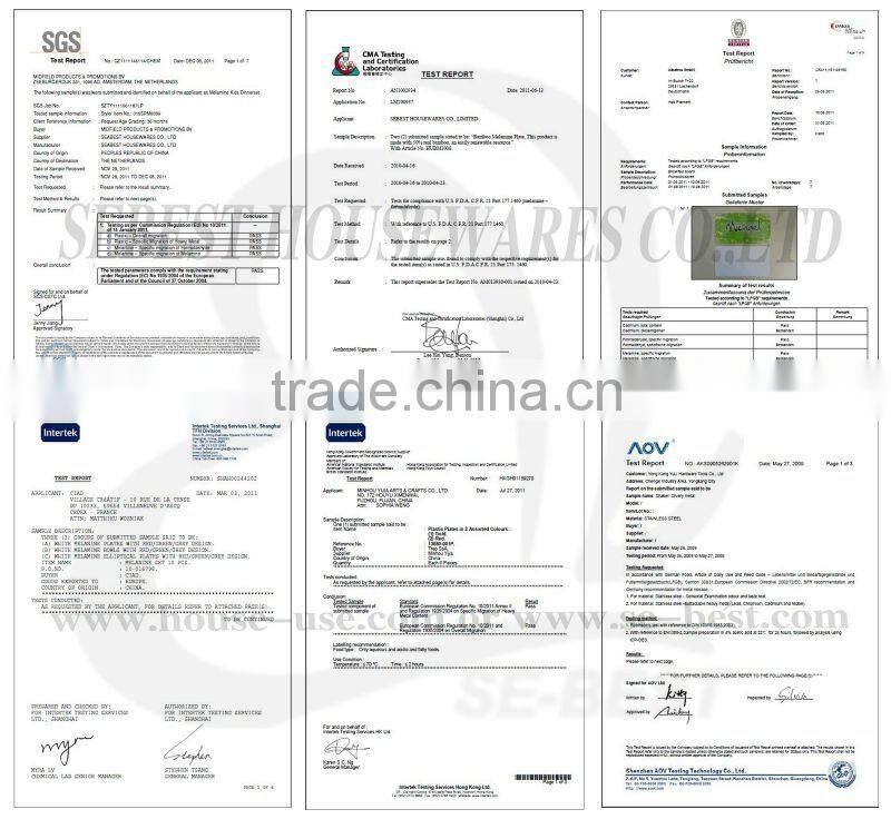 1).we have many years experiences in housewares field.our primal company establish in 2004. 2). We are a Chinese export company with our own melamine factory and we also have trading office for flatware,Plasitc,textile products.which have our other steady and long time cooperated factories. 3). Our products range: disposable dinnerware, melamine ware, plastic tableware(such as plate, bowl, glasses), placemat, flatware /cutlery, kitchen set (oven mitts, pot holder, apron, towel ,ect), 4)Our products can be passed FDA,LFGB,REACH etc. 5)Welcome customers’ new logo and design. |