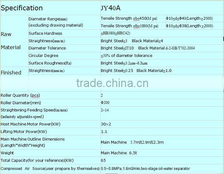 According to the diameter and the material properties of the bar,respectively to adjust upper and lower straightening roller angle,electric lift part adjust the gap between the two straightening rolls,start the cooling lubrication system,driven by main motor,to complete calendering and straightening at the same time.