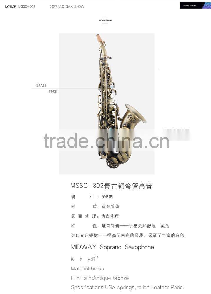 MSSC-302 Vintage Bronze Curved Soprano Saxophone From China Supplier