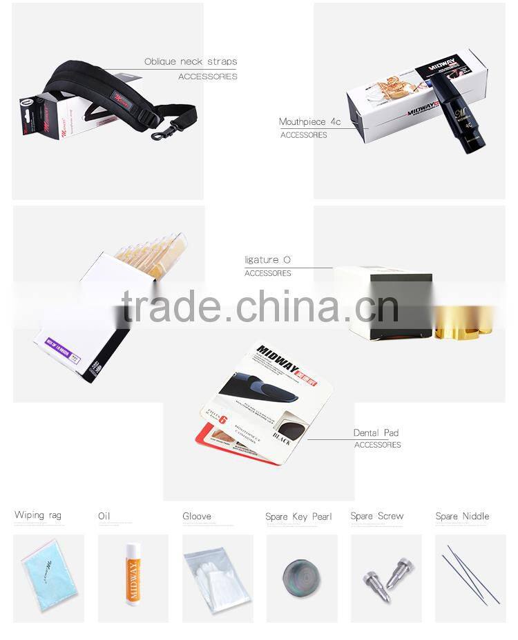 In addition to the main products, MIDWAY has the best supporting factories of bag, the neck belt, reed, flute first accessories field combined in China. International quality standards ensure each a MIDWAY musical instrument the perfect accessories and packaging solutions.