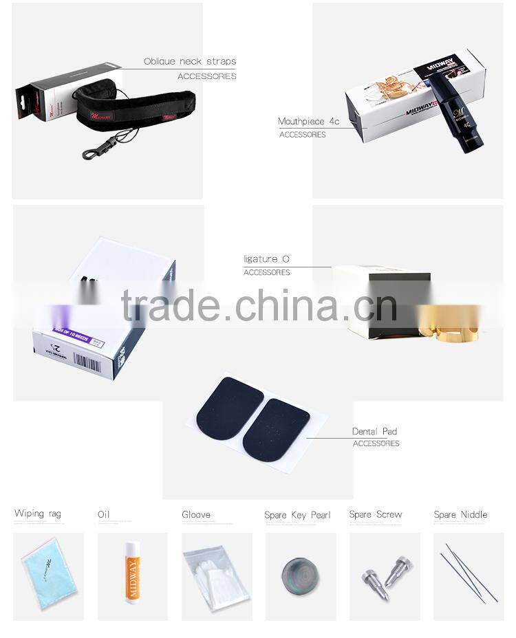 In addition to the main products, MIDWAY has the best supporting factories of bag, the neck belt, reed, flute first accessories field combined in China. International quality standards ensure each a MIDWAY musical instrument the perfect accessories and packaging solutions.